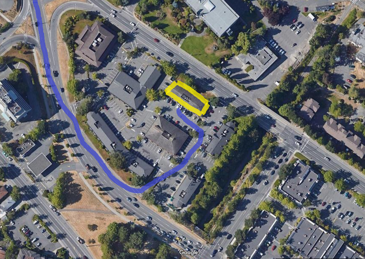 Please refrain from parking in the area highlighted with the red box. We have neighbours in food services that need parking for their customers. The Gateway Village is full of parking and, if need be, Hansbraun Investments has allowed our participants and spectators to park in the Saanich Plaza across the street (the one with the Boston Pizza and Save On Foods).
