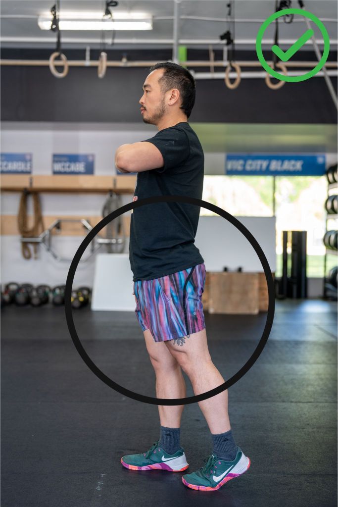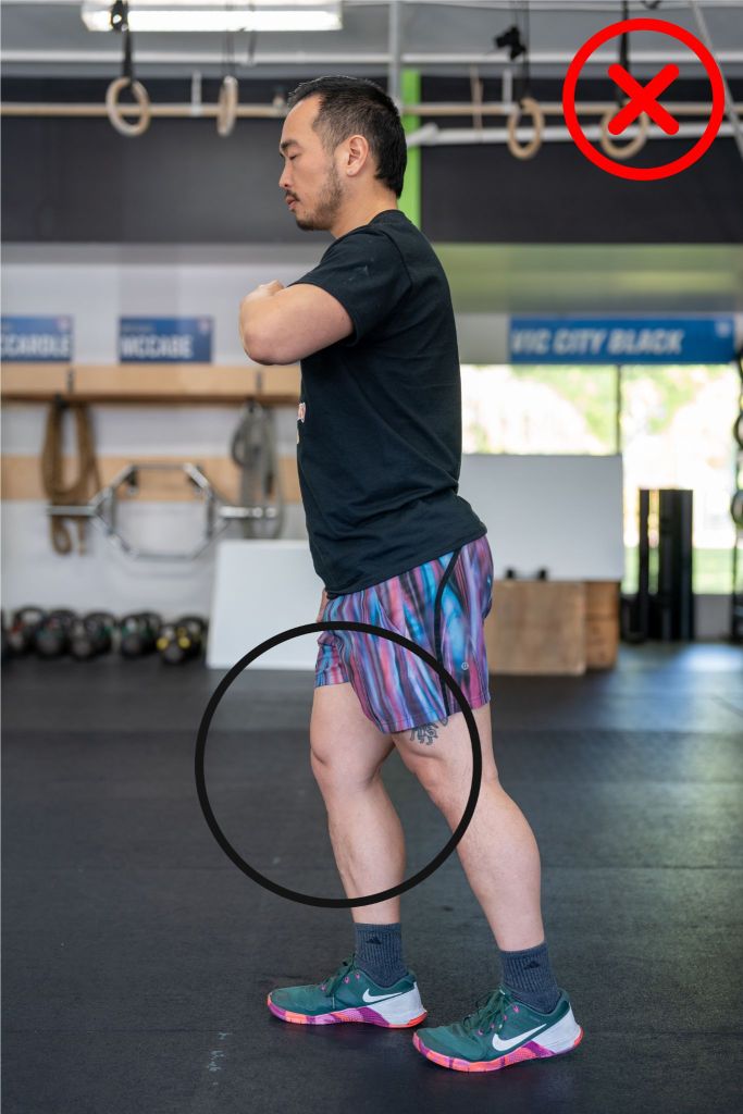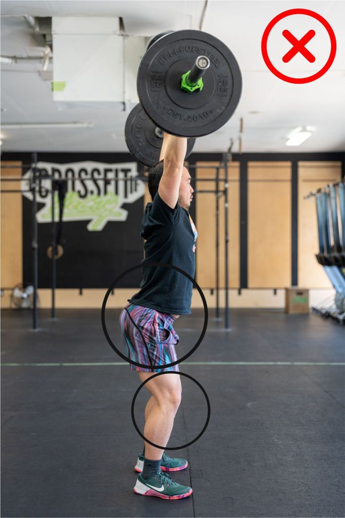 Athletes must ensure that hips and knees are fully extended at the top of the walking lunge. Failure to do so will result in a no rep.